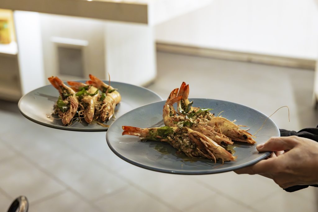 - Chargrilled Prawns with saltbush garlic butter + finger lime